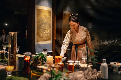 一場還原度極高的古風盛宴,像是讓我們乘時光機穿越回特定的朝代,並讓味蕾在歲月的積澱中品味彼時的風雅。宋宴,在古代菜譜的脈絡之上填補現代烹飪技法,以今日之食材還原古法美味,掀起了杭州宋宴風潮。