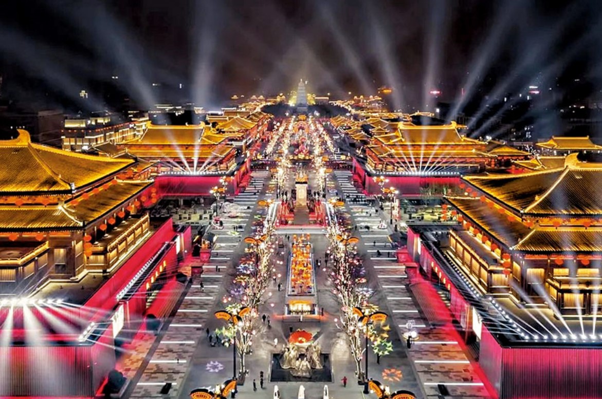 大唐不夜城: 位於大雁塔腳下,是中國唯一一個以盛唐文化為背景的大型仿唐建築群步行街。