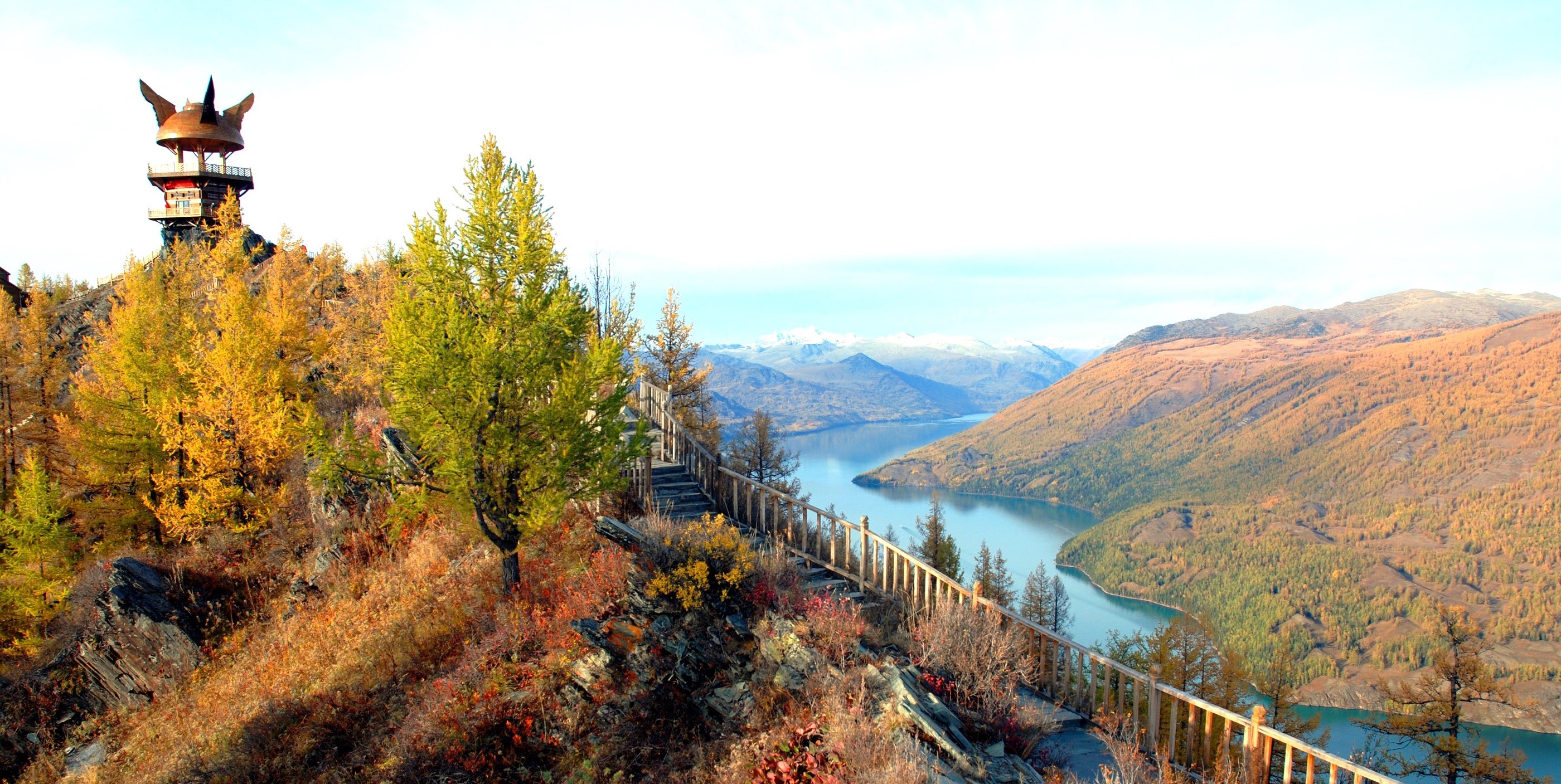 觀魚台: 位駱駝峰頂,為觀“湖怪”而建,因此得名。是俯瞰喀納斯湖全景最佳點,能看到阿爾泰山最高峰友誼峰。