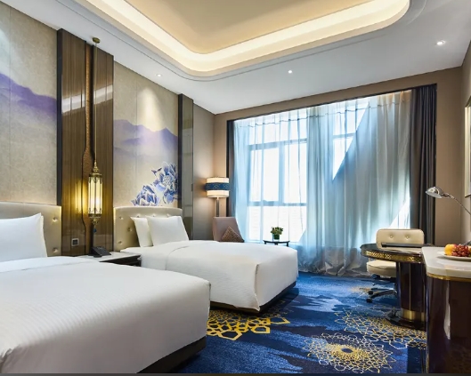 - 迎賓大廳(蜀繡光影牆+芙蓉宮燈)—餐吧區(蜀錦座椅+川味風物展)—茶吧雅室(宋式茶寮+枯山水造景)