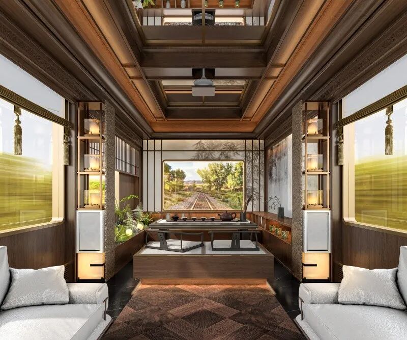 - 設有多功能客廳、觀景娛樂車廂,實現“景隨車移、窗即畫框”的沉浸觀覽