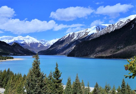 然烏湖: 水源基本上來自來古冰川上的融冰,為藏東第一大湖,湖面海拔約3850米,湖邊一大片碧草如茵的草甸,和碧藍的湖水、白雪皚皚的雪峰,景色如詩如畫。