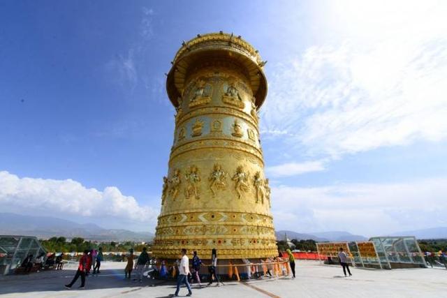 龜山大佛寺: 位於獨克宗古城中心的龜山公園,依山而建,擁有世界最大的鍍金銅轉經筒。