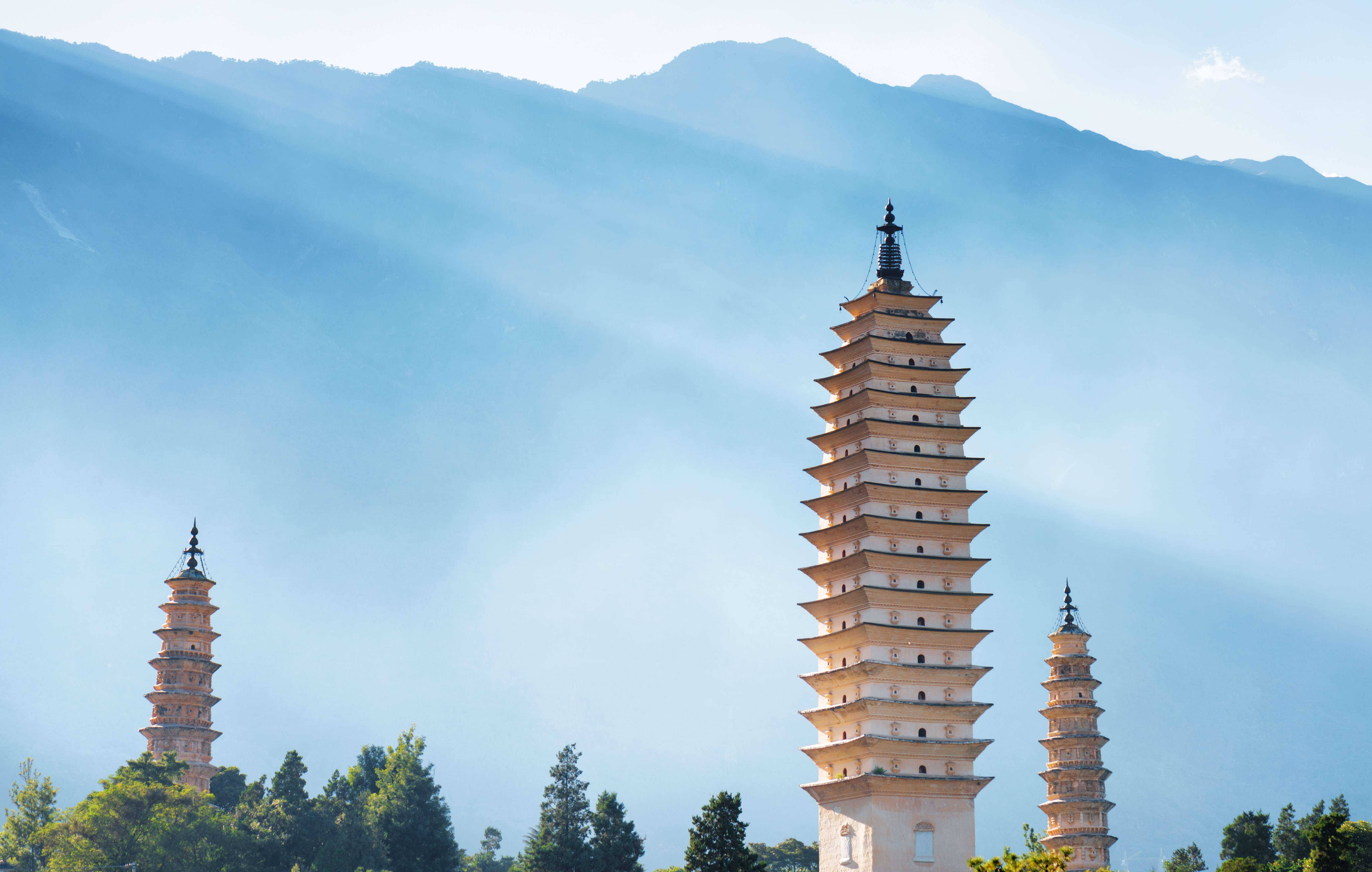 崇聖寺三塔: 大理地標名勝,歷史上規模最為宏大的古剎,寺中一大二小三塔聞名於世。