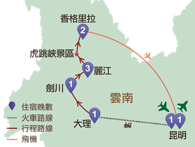 昆明、大理、劍川、麗江、香格里拉