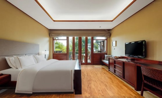 酒店完美結合中國風情與度假氛圍,強調自然與人文和諧共生,依傍著羅梭江畔而立、毗鄰國家5A級熱帶植物園景區、被天然茶樹與少數民族村落環繞,讓人可以完全沉浸在大自然的心曠神怡之中。豪華客房配備私人陽台,欣賞蔥郁的花園景致。