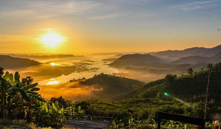 湄公河遊船:湄公河風光明媚,涼風吹來舒爽清新,這裡的山景秀麗,綿延的山峰、峰峰相連。