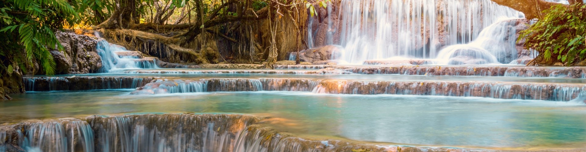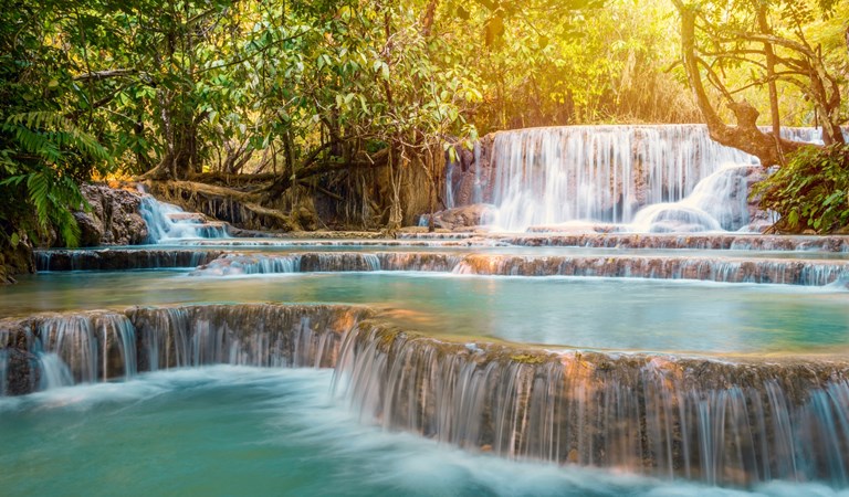 光西瀑布: 由多個瀑布組成的瀑布群。總高上百米,從石灰石山峰傾瀉而下,在山下匯集成一個個水池,呈碧藍色。