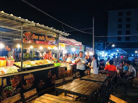 龍坡邦夜市:每天大約下午5時左右開始擺攤,從傳統服裝到寮國小吃,應有盡有。