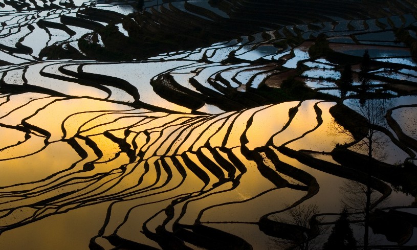 多依樹梯田: 景區上萬畝梯田,像版畫一樣連綿壯觀。尤其是日出的時候,朝陽的光輝在梯田水面跳躍,變幻多彩。