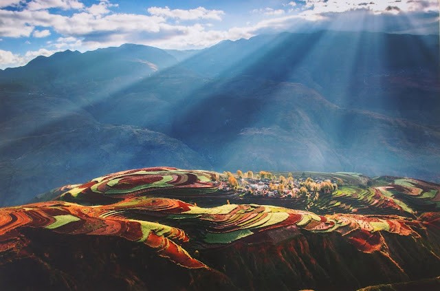 東川紅土地: 紅土壤含有較多的鐵、鋁,酸性強,黏性重,在這環境下,鐵經氧化後慢慢沉積,逐漸形成耀眼的色彩。