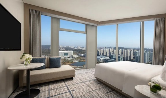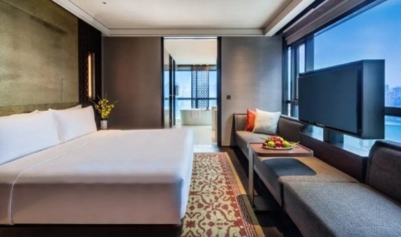酒店擁有202間設計時尚雅緻的客房,許多房間可俯瞰嘉陵江及渝中半島的美麗景致,尤其是夜晚可以欣賞燈火通明的洪崖洞。客房寬敞舒適,結合東方優雅韻味與現代時尚,配備高級床品、智能浴室設施及免費迷你吧等貼心服務。