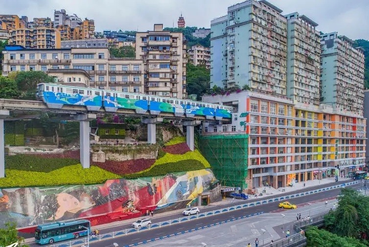 單軌2號線李子壩站是重慶唯一的樓中站。該站的“穿越式”設計在全中國是首例。