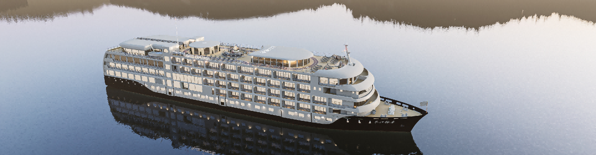 新長江探索號(Yangzi Explorer)由世界一流內河船舶設計院和國際內裝設計師設計,是世界上通航升船機的最大遊輪。全新遊輪完美繼承三十年來積澱的深厚底蘊,1:50的乘客空間比處於全球領先地位,提供三種房型滿足貴賓的多樣化旅居需求。