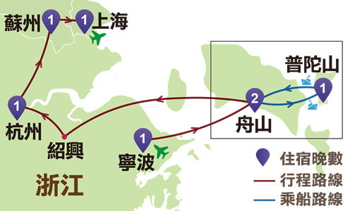 暢遊: 寧波、普陀山、舟山、紹興、杭州、蘇州、上海