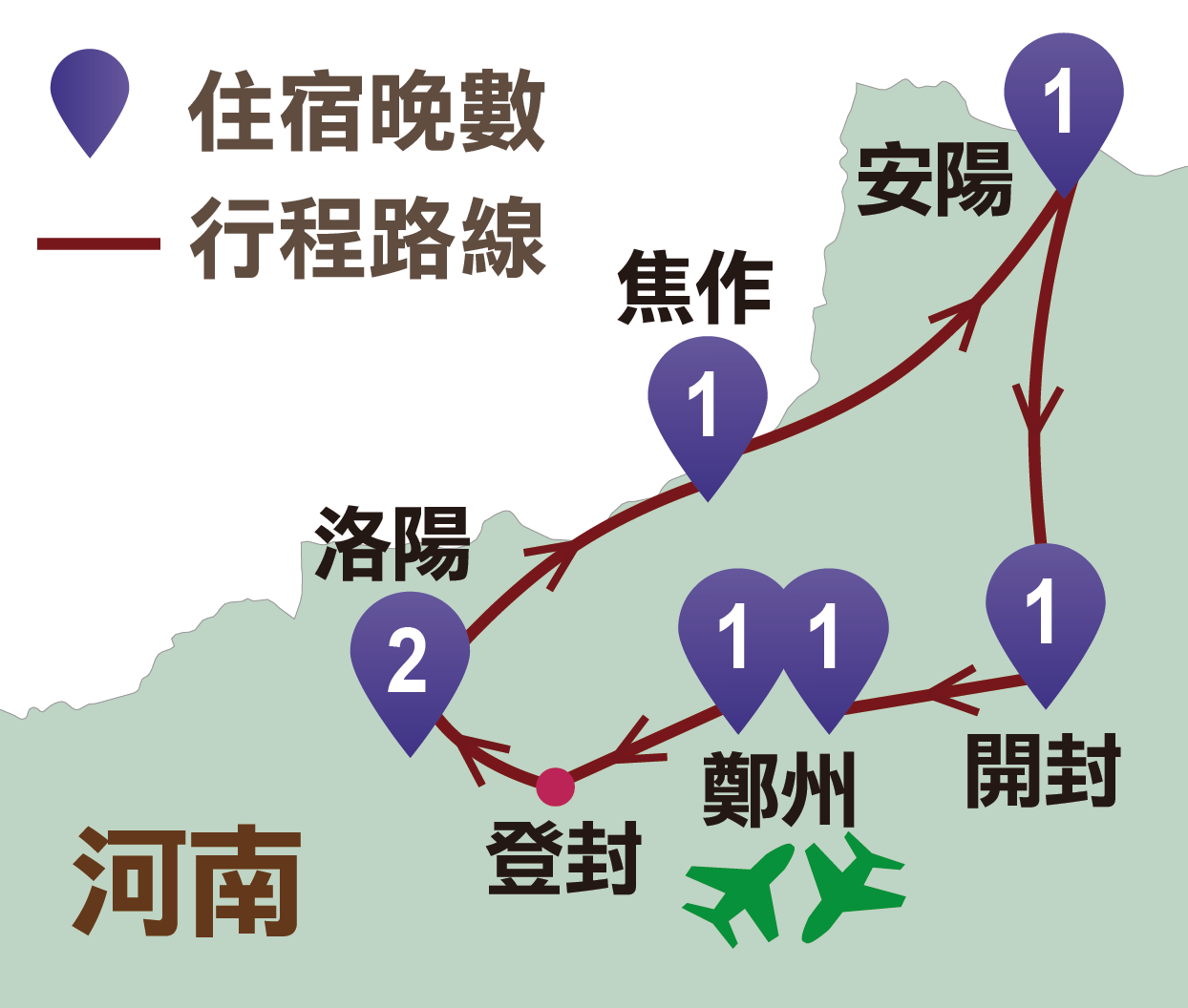 鄭州、登封、洛陽、焦作、安陽、開封