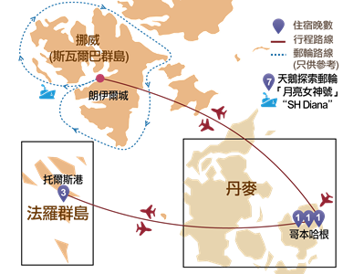 (註︰如法羅群島的米芝蓮推薦餐廳休息或未能提供足夠團體訂位,將改於第13天於丹麥享用米芝蓮推薦餐廳晚餐,是日晚餐將安排於當地或酒店餐廳,敬請留意。)