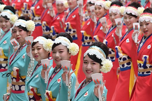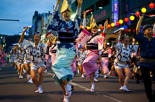 日本四國地區最具代表性的祭典之一,以其活力四射的舞蹈和音樂而聞名,參與者穿著色彩繽紛的傳統服裝,隨著音樂跳舞,展現出獨特的舞蹈風格。