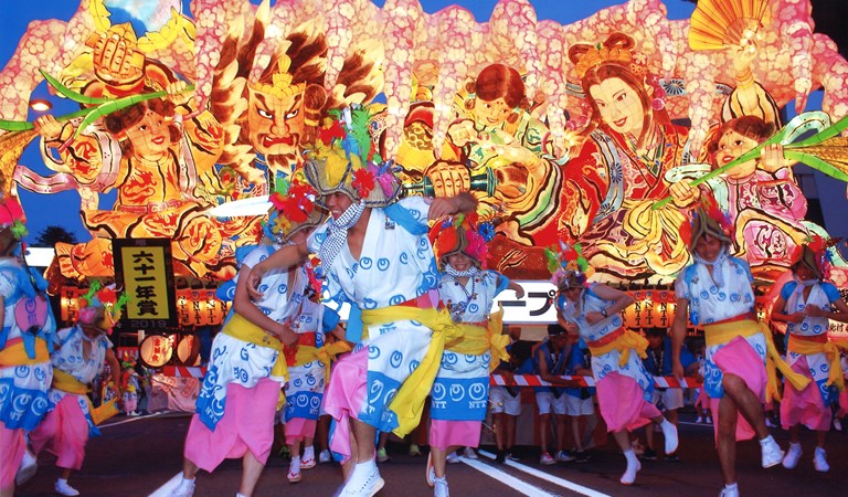 日本最著名的夏季祭典之一,主要特色是大型的「睡魔燈籠」,這些燈籠通常以日本傳說中的英雄、神佛或歌舞伎為主題,製作精美,並在夜晚的遊行中閃耀著燈光。