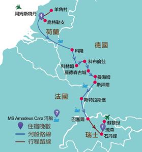 是日將航行於萊茵河峽谷,途徑洛麗莉岩及兩岸大小城堡。