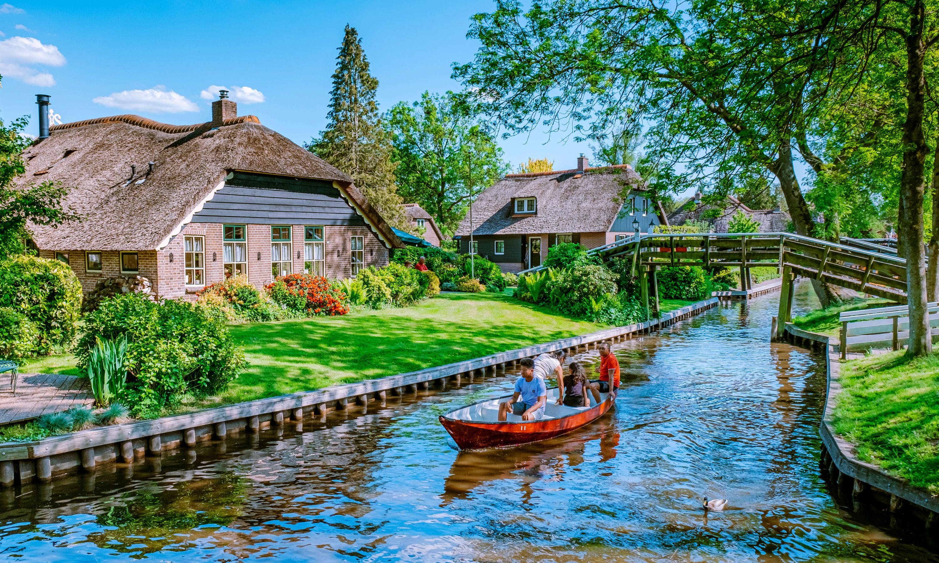 居民以運河、小船和超過170座的木橋作為主要交通方式。遊客可乘船穿梭在水道間,欣賞兩岸茅草屋頂的農舍與田園風光,享受如童話般寧靜、與世隔絕的獨特魅力。