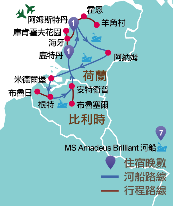 荷蘭:阿姆斯特丹、海牙、代爾夫特、鹿特丹、阿納姆、米德爾堡、庫肯霍夫