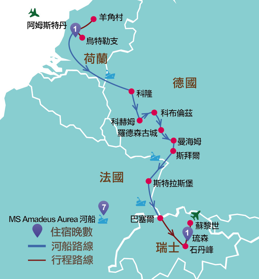 擁有超過30年營運河船的經驗,傳統及創新並重的服務贏得國際聲譽。品牌旗下15艘Amadeus河船的設施媲美五星級酒店,除了內裝典雅,寬敞的套房更備有全景窗戶;船上供應優質的膳食,並將親切服務融入其中,旅客可輕鬆地享受奢華環境。