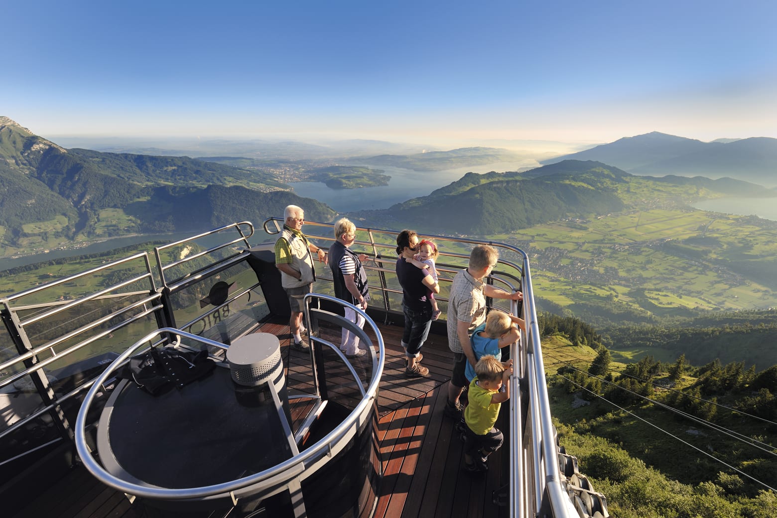 自1893年起,敞篷木製車廂就從施坦斯安靜地駛往石丹峰。 起點位於中間站的高空纜車最吸引人的地方之一就是敞篷車頂平台。站在雙層全景車廂的車頂會帶給人一種震撼的感覺,近距離感受纜車在立柱之間運行的狀態,盡情享受風吹過臉龐的舒適,無障礙的欣賞到周圍的美麗景色。