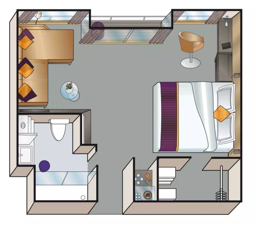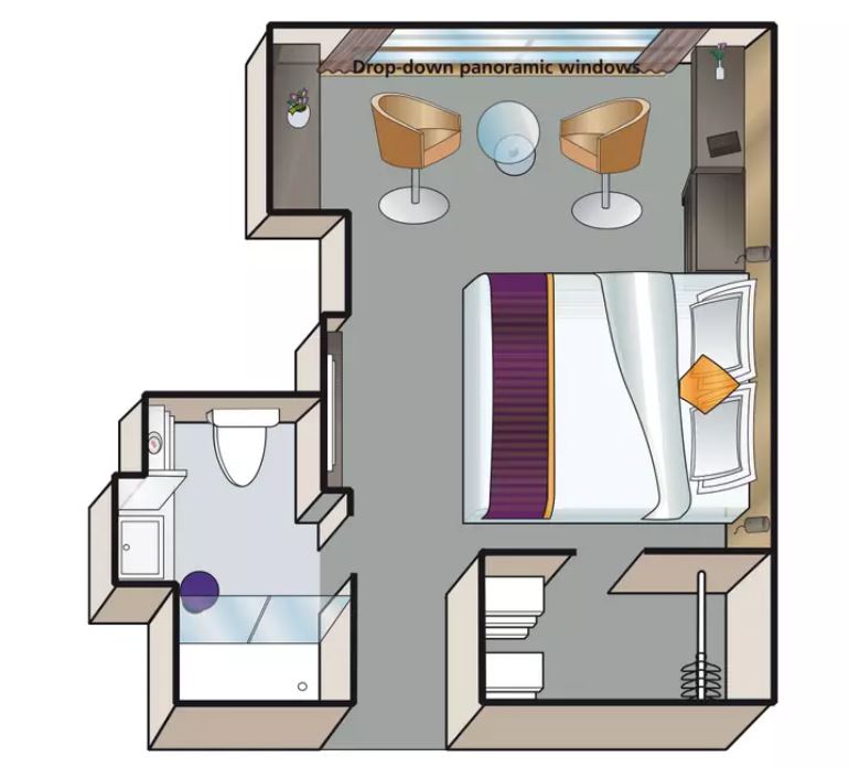 位於第3層(Mozart Deck),房間面積約284平方尺 -
