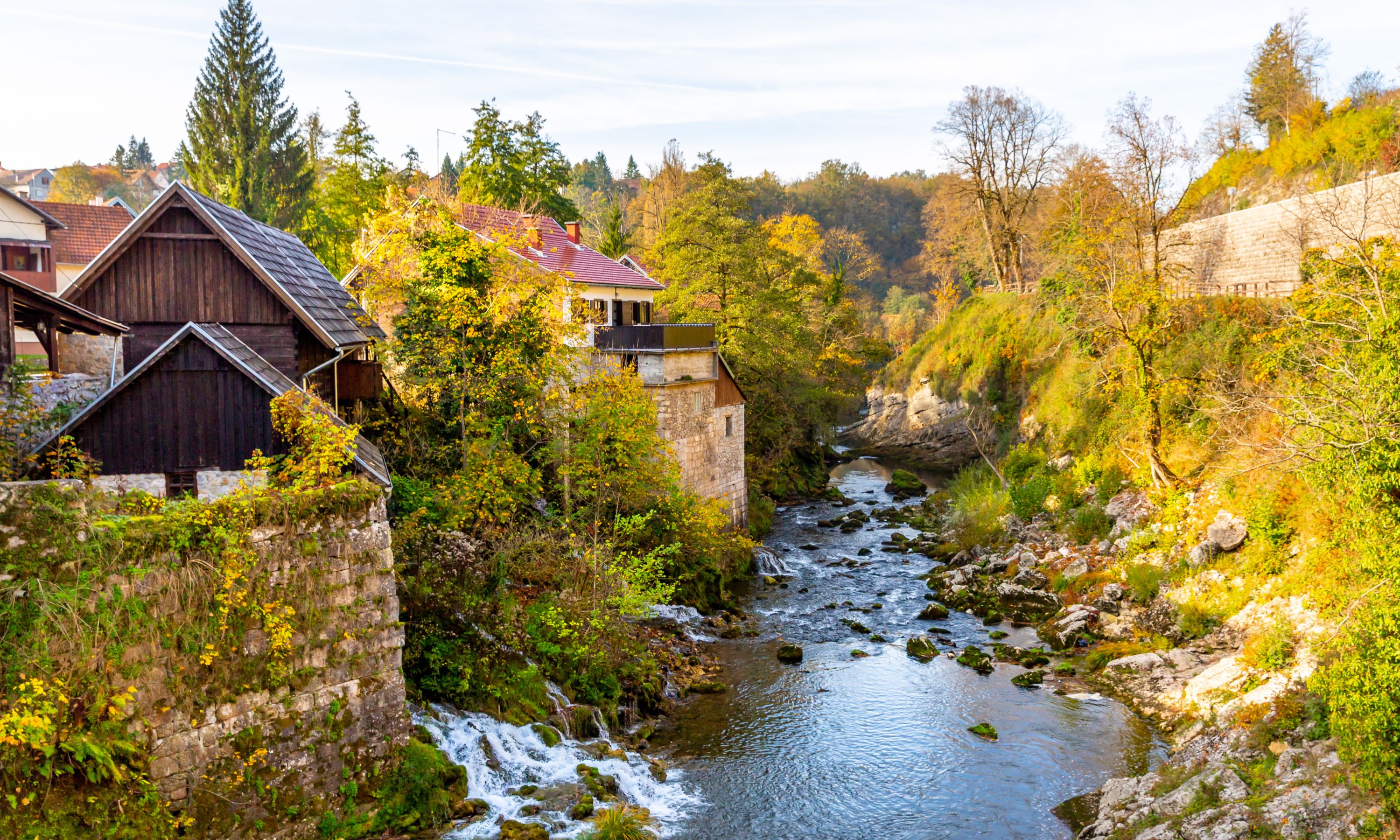 保存良好的磨坊村莊,以瀑布與水車聞名,欣賞木屋、流水、瀑布、田園、樹林組成的畫面。