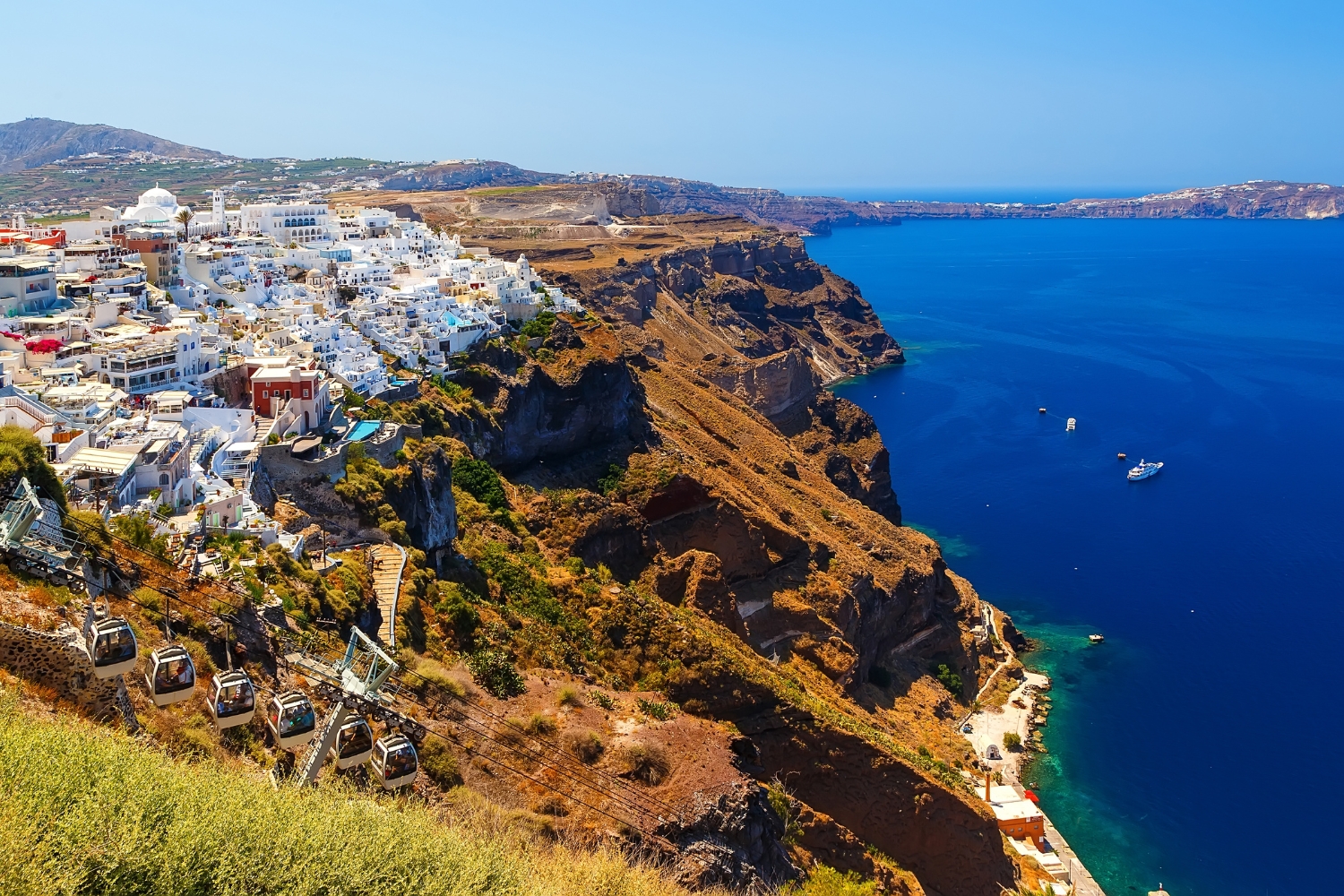 聖淘維尼島的首府,費拉建立在大海的陡峭懸 崖上,有許多風格樸實的美麗白色建築。