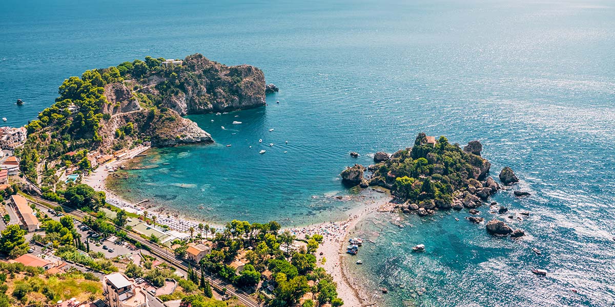 迷人的山海景觀,俯瞰著愛歐尼奧海又背倚埃特 納火山(Mount Etna),享有絕佳的自然風光。
