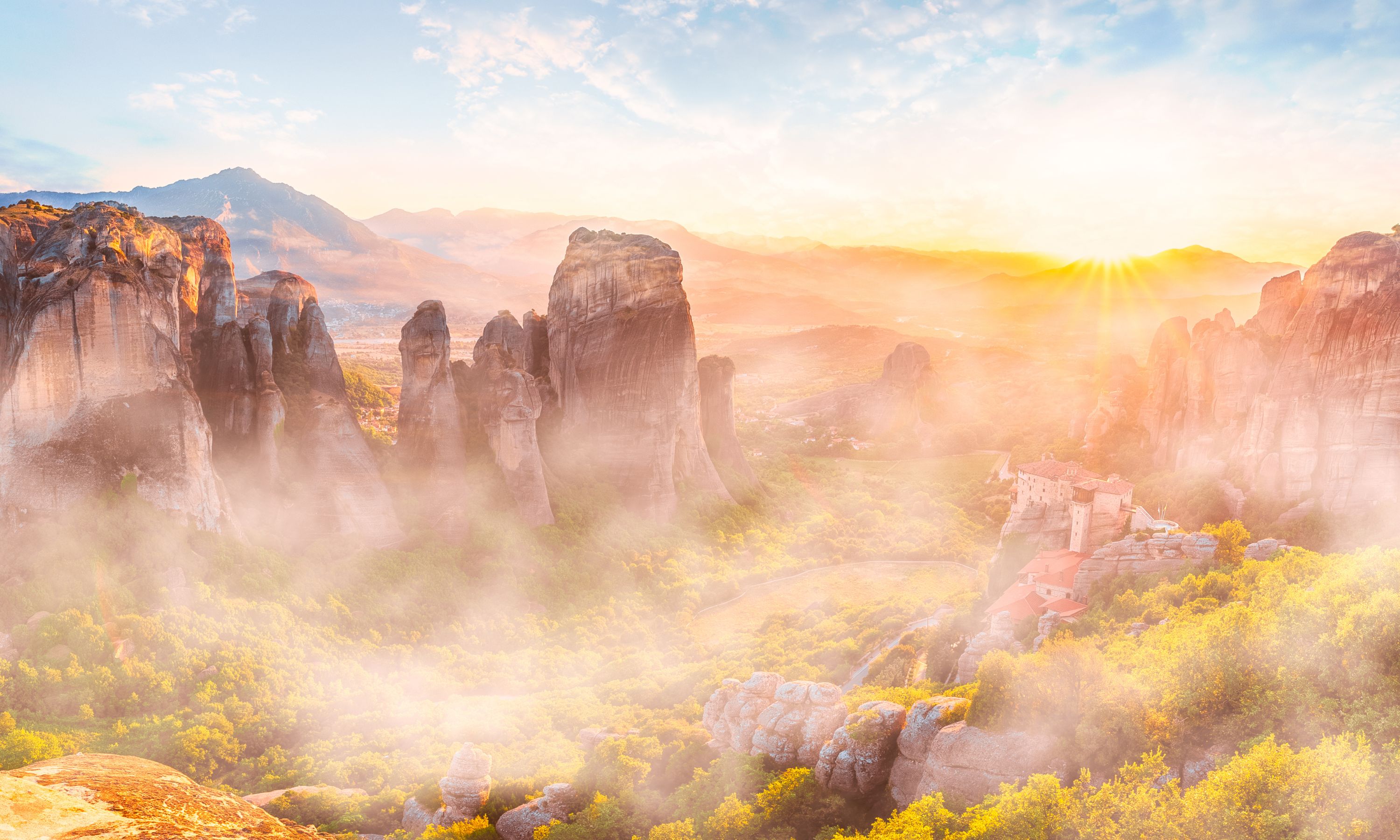 原本擁有24座修道院,是東正教修道院中最大且最陡峭的建築群之一。如今只有6座完整保存下來,昂然屹立於高聳岩柱上,一睹與世隔絕的聖地,讚嘆鬼斧神工的奇景之餘,更有機會了解修士的修行及生活概況。