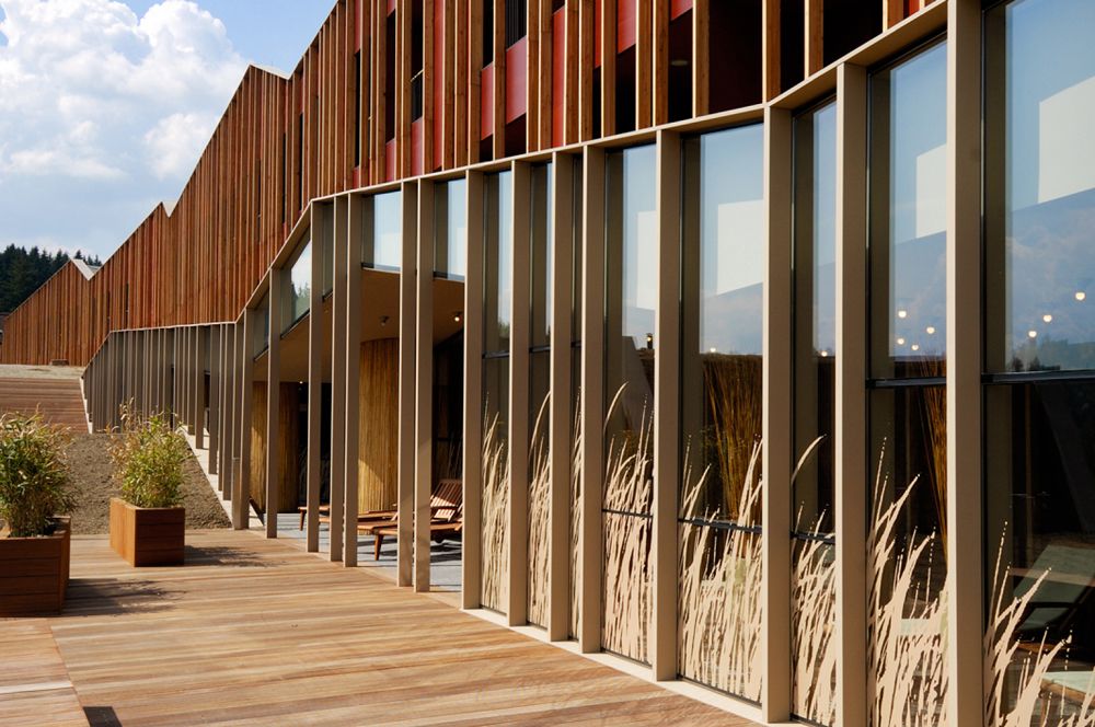 位於斯洛文尼亞奧利米亞溫泉區的永續酒店,以獨特的建築設計聞名,巧妙地隱藏在森林中與周圍的自然環境完美融合。