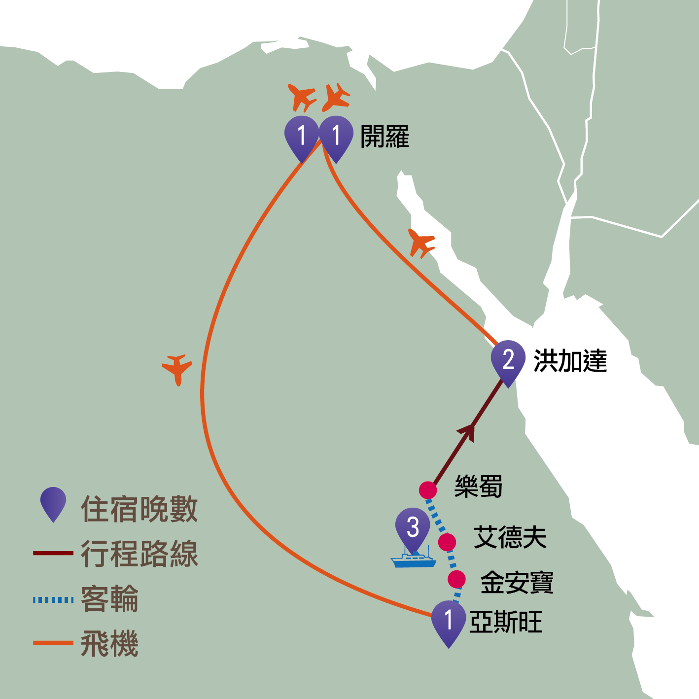 埃及:開羅、亞斯旺、金安寶、艾德夫、樂蜀、洪加達