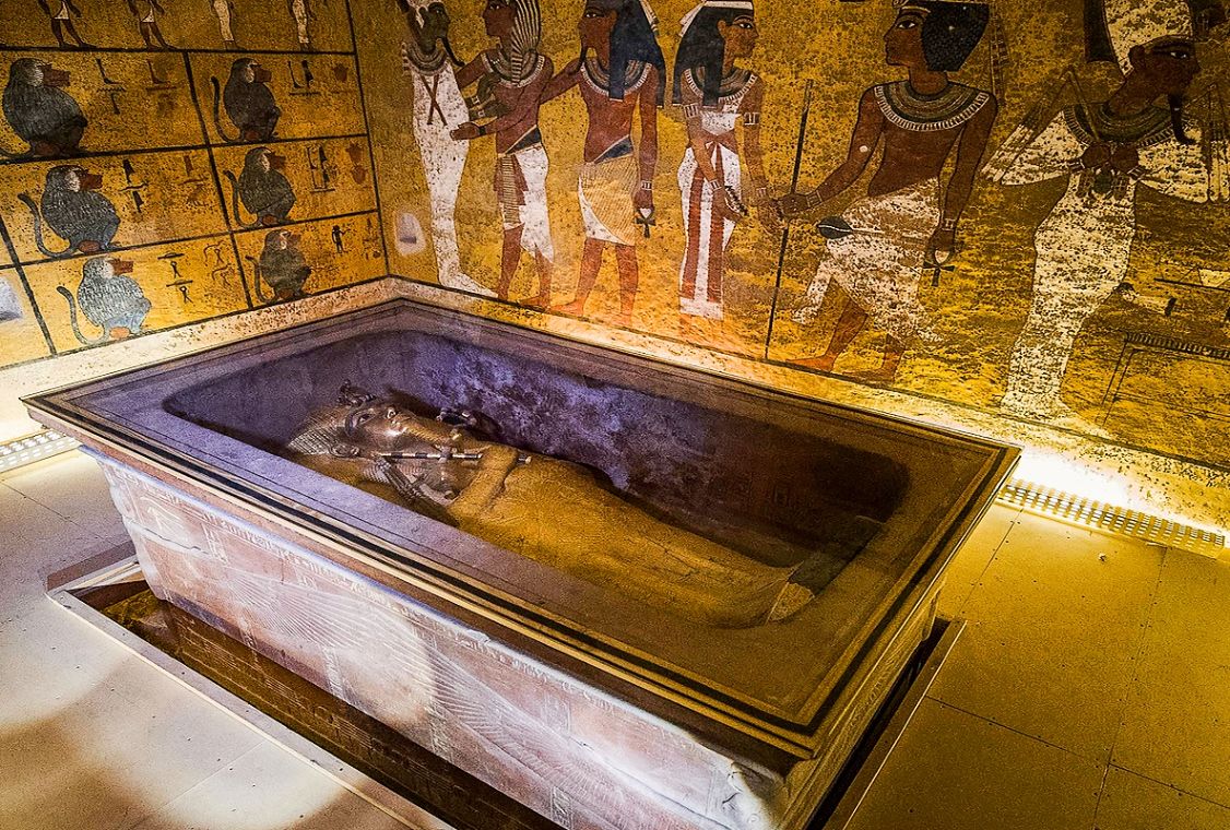 20 世紀古埃及考古學最重要的發現之一,1922 年出土前的3 千多年來,圖坦卡門的陵墓從未受到盜墓者的洗劫,挖掘出名聞遐邇的黃金面具、黃金棺木等價值連城的出土文物。圖坦卡門的木乃伊、墓室雕刻壁畫等寶藏亦重見天日。