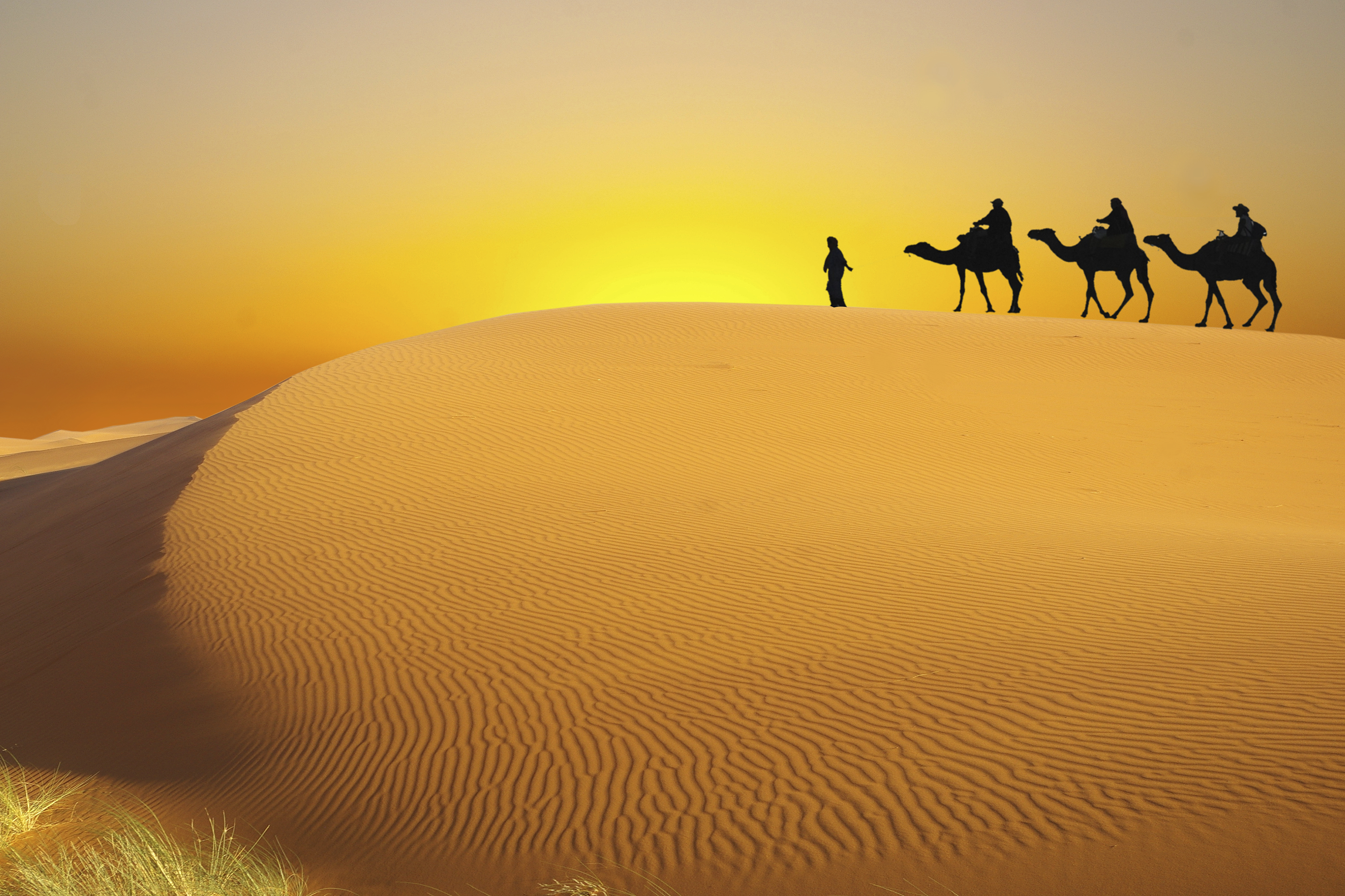 撒哈拉沙漠日出之旅:騎駱駝漫遊於沙漠,觀賞沙漠日出美景。(客人也可選擇漫步沙漠)欣賞令人屏息的沙漠日出,是最動人難忘的自然美景之一。