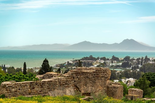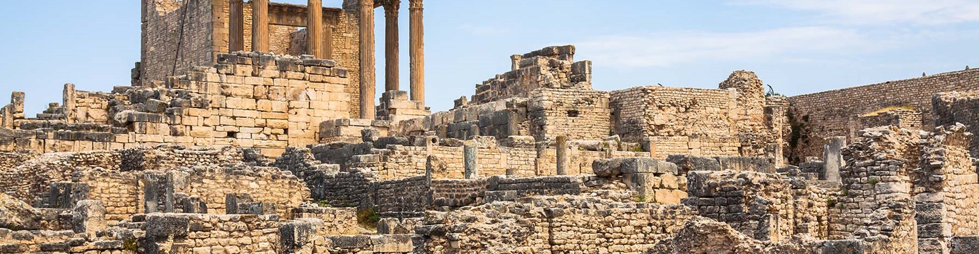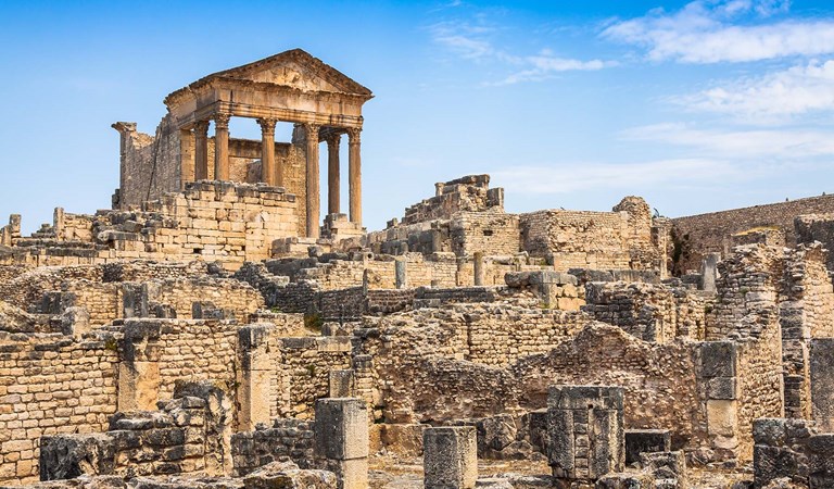迦太基帝國發源地。曾被羅馬帝國佔領,成為帝國的穀倉,現時北非保存得最完好的羅馬遺址之一。矗立山坡上的半圓形羅馬劇場遺跡、宙斯神殿等,令人嘆為觀止。
