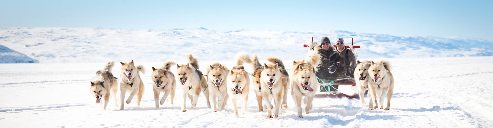 格陵蘭雪橇犬是格陵蘭的象徵,幫助因紐特人在嚴酷環境中生存,成為聯繫散居村莊的古老交通工具。乘坐格陵蘭犬拉動的雪橇隊伍,穿越山口和冰湖,體驗極地世界。
