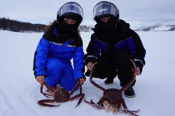 早餐後,乘坐雪上電單車拉雪橇前往結冰的峽灣上捕捉帝皇蟹。