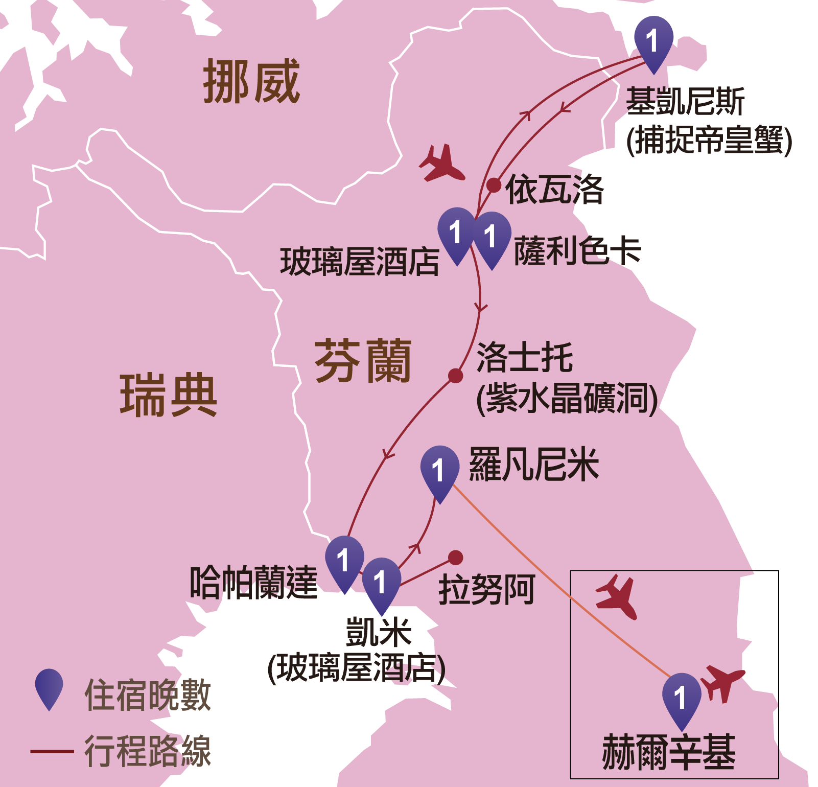 芬蘭:依瓦洛、薩利色卡、洛士托、羅凡尼米、凱米、赫爾辛基