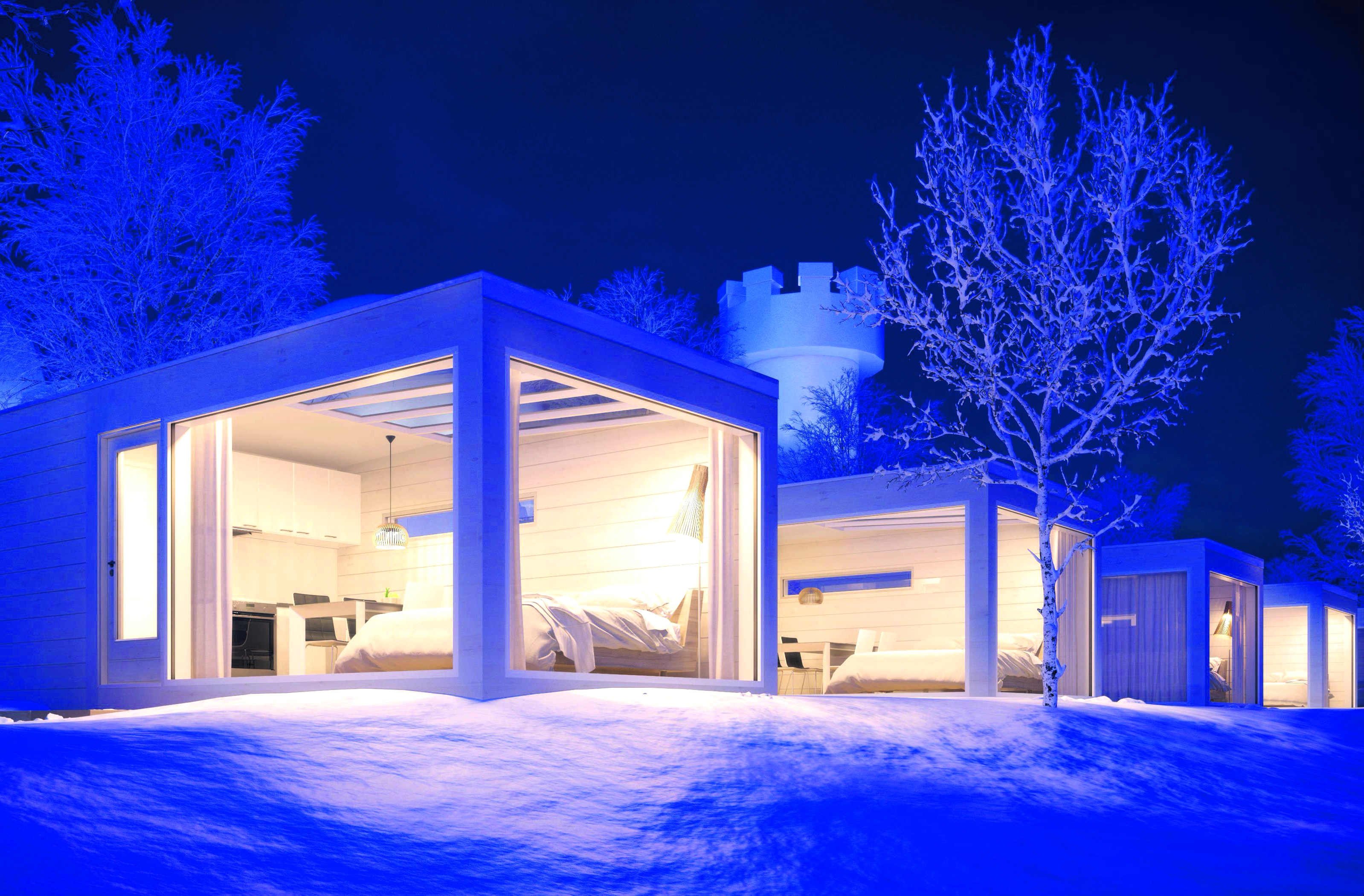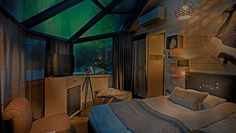 玻璃屋酒店是為了觀賞極光而設計的靈感來自傳統的拉普蘭小屋。部份屋頂其中一面由透明玻璃建成,而且類型繁多。玻璃都是保溫玻璃,可保持屋內溫暖,也可防止屋頂積雪情況出現。即便在極寒天氣下,屋內都是暖暖的,提供一個舒適的環境觀賞極光,是畢生難得的體驗。