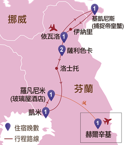 芬蘭:依瓦洛、伊納里、薩利色卡、洛士托、凱米、羅凡尼米、赫爾辛基