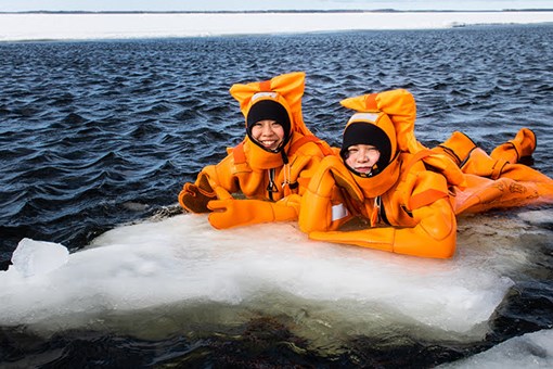 每年12月至4月是破冰船之旅的黃金季節,當破冰船駛入冰海,巨輪在冰封水域中破開通道,船身與被破開的冰塊撞擊,發出震耳欲聾巨響,令人為之震撼與興奮。隨後破冰船停冰洋中,團友可以下船,身穿特種保暖衣,在冰冷的海水上浮游,靜躺看著天空與身旁銀白的冰海,夢幻而神奇。
