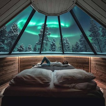 玻璃屋酒店是為了觀賞極光而設計的靈感來自傳統的拉普蘭小屋。屋頂呈全透明玻璃,而且類型繁多。玻璃都是保溫玻璃,可保持屋內溫暖,也可防止屋頂積雪情況出現。即便在極寒天氣下,屋內都是暖暖的,提供一個舒適的環境觀賞極光,是畢生難得的體驗。