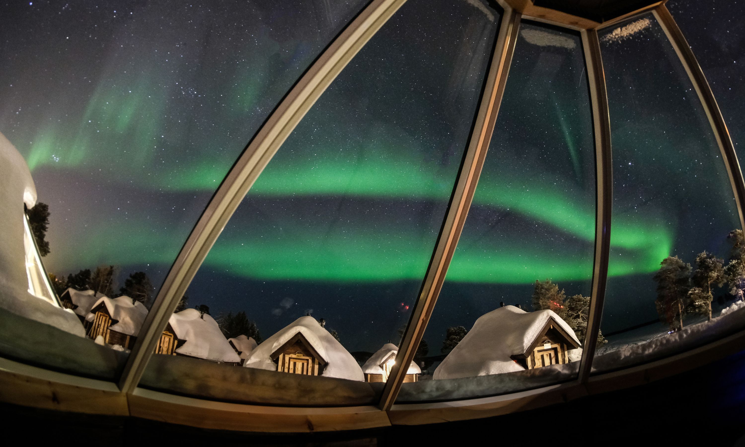 玻璃屋酒店是為了觀賞極光而設計的靈感來自傳統的拉普蘭小屋。屋頂呈全透明玻璃,而且類型繁多。玻璃都是保溫玻璃,可保持屋內溫暖,也防可防止屋頂積雪情況出現。即便在極寒天氣下,屋內都是暖暖的,提供一個舒適的環境觀賞極光,是畢生難得的體驗。
