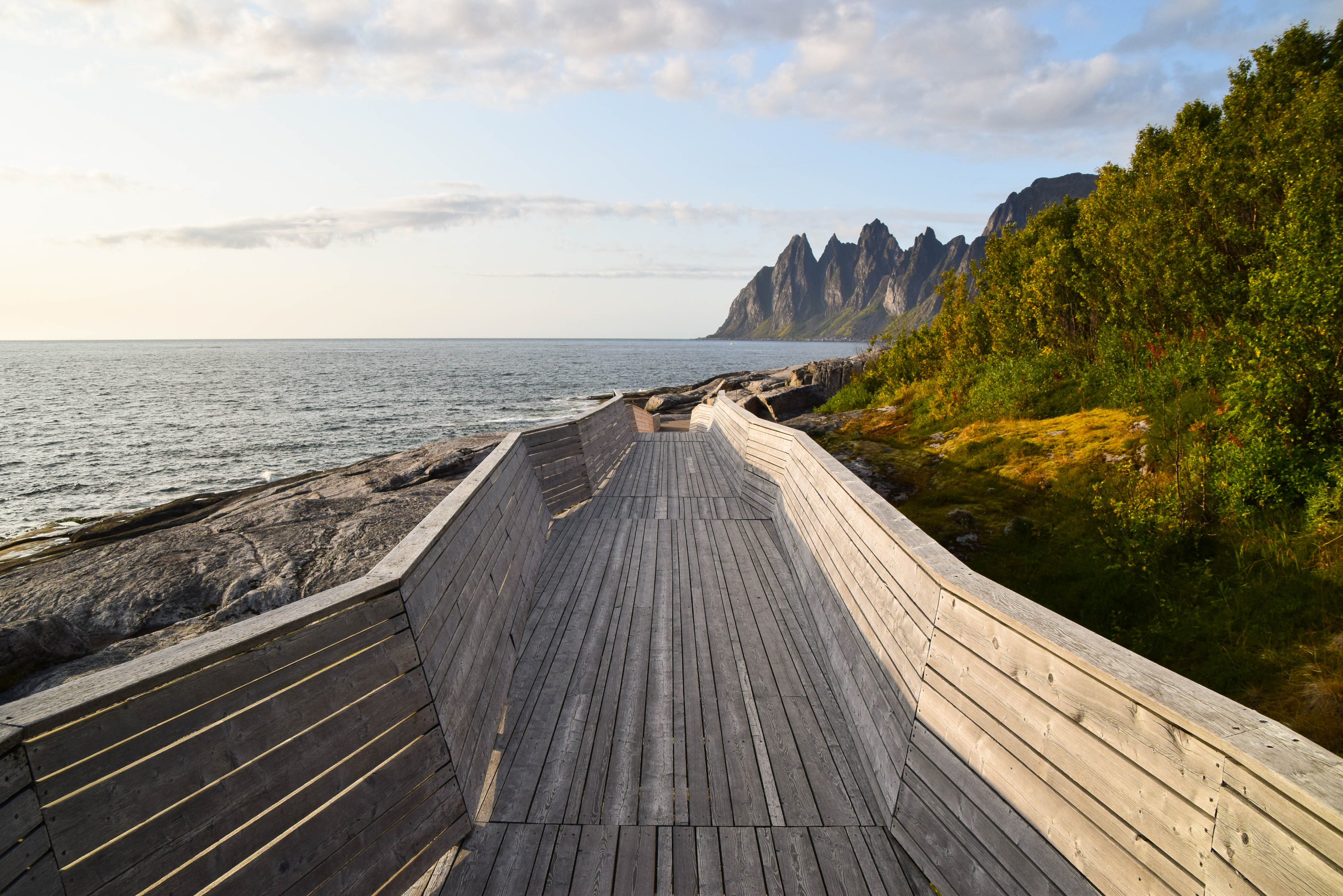 被譽為挪威最迷人的自駕遊之一,總長約41公里,沿途展現壯麗的自然景觀和獨特的地形。這條路線連接了多個觀景點,從Bergsbotn觀景台的全景視野沿著木板路漫步至Tungeneset觀景台俯瞰“魔鬼之牙”的獨特山峰,這裡的海岸線和岩石形成了獨特的自然景觀,是拍攝日落的絕佳地點。