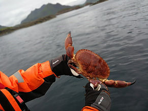 乘坐橡皮艇出海,一睹捕捉麵包蟹過程,由當地工作人員將預早放好餌的籠子拉上來,把生猛的麵包蟹 帶回海邊小木屋,鮮美無比的麵包蟹就送到桌上給團友享用。
