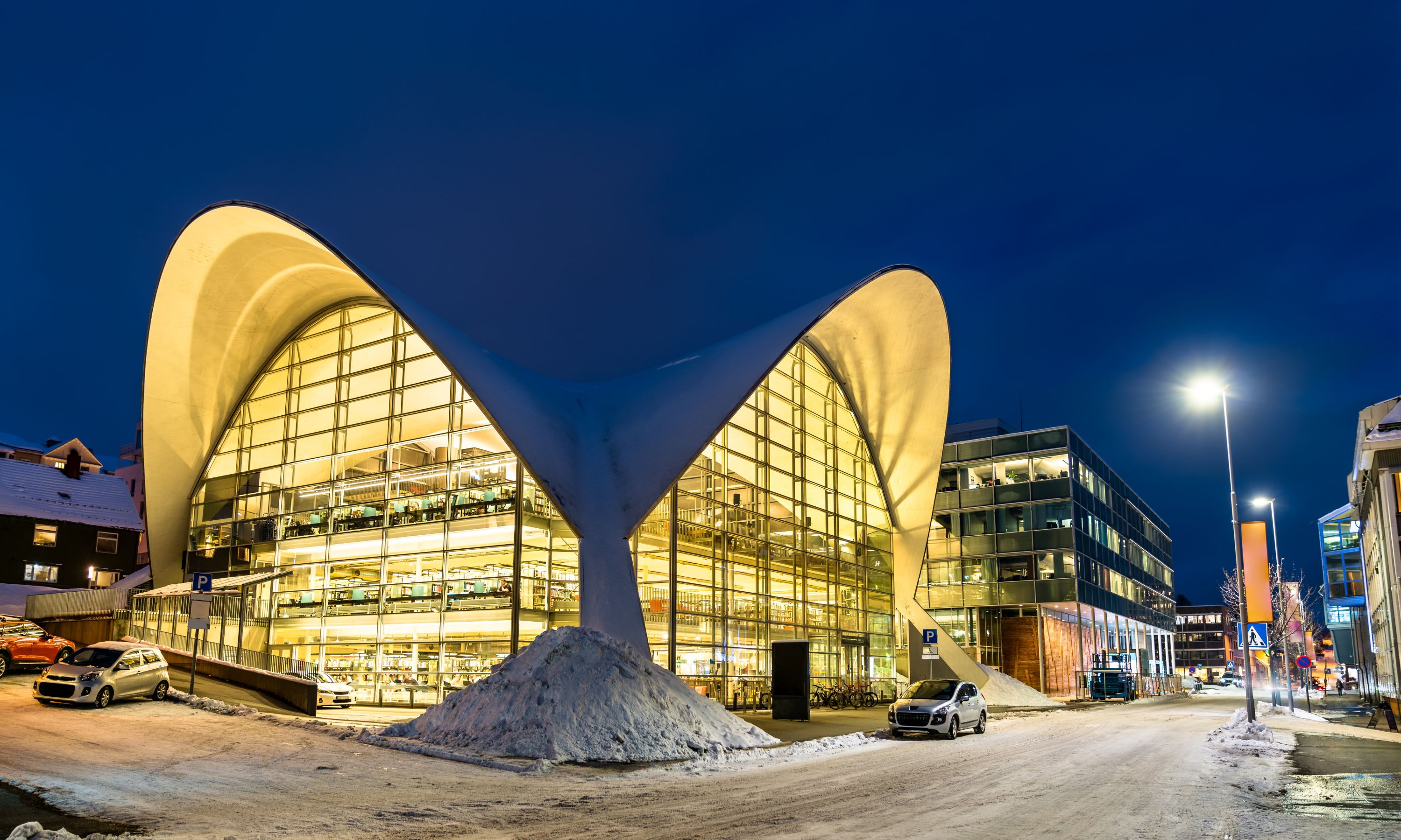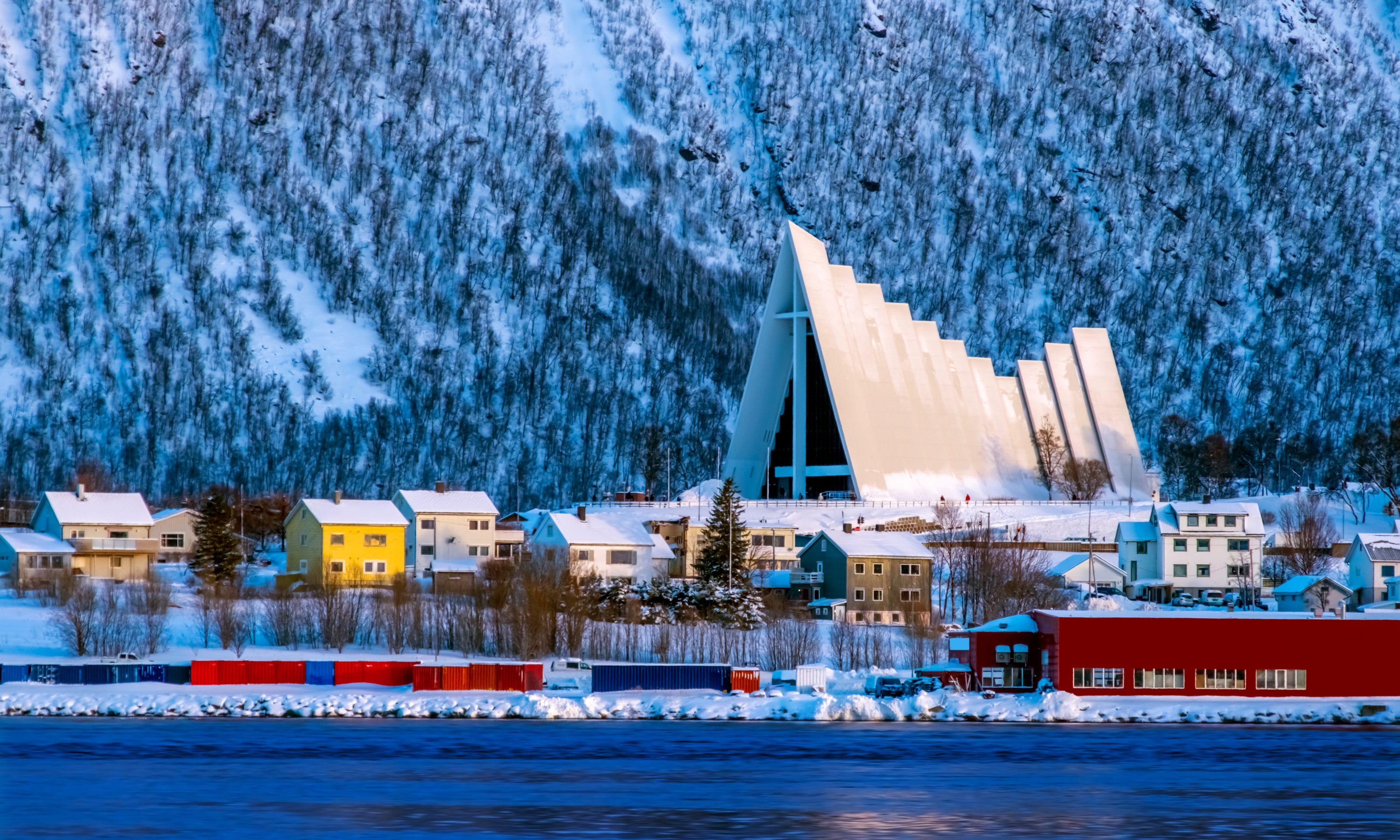 座建在跨越特朗索大橋並在市中心正對面的南岸山谷上,經過特朗索就能看到這座地標,因為它白色三角形和北歐最大彩色玻璃窗的造型實在是太引人注目,常被挪威人暱稱「挪威歌劇院」。