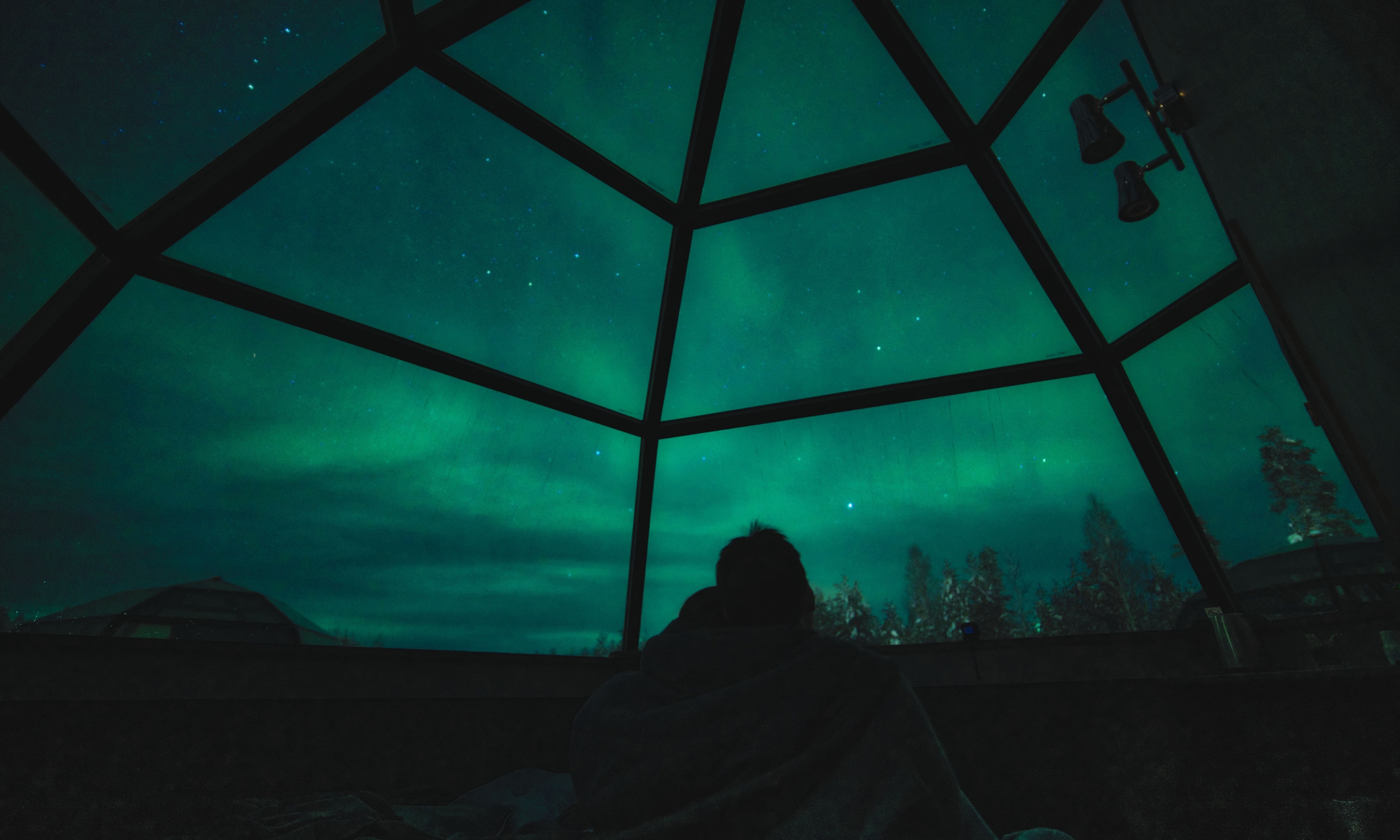 玻璃屋酒店是為了觀賞極光而設計的靈感來自傳統的拉普蘭小屋。屋頂呈全透明玻璃,而且類型繁多。玻璃都是保溫玻璃,可保持屋內溫暖,也防可防止屋頂積雪情況出現。即便在極寒天氣下,屋內都是暖暖的,提供一個舒適的環境觀賞極光,是畢生難得的體驗。